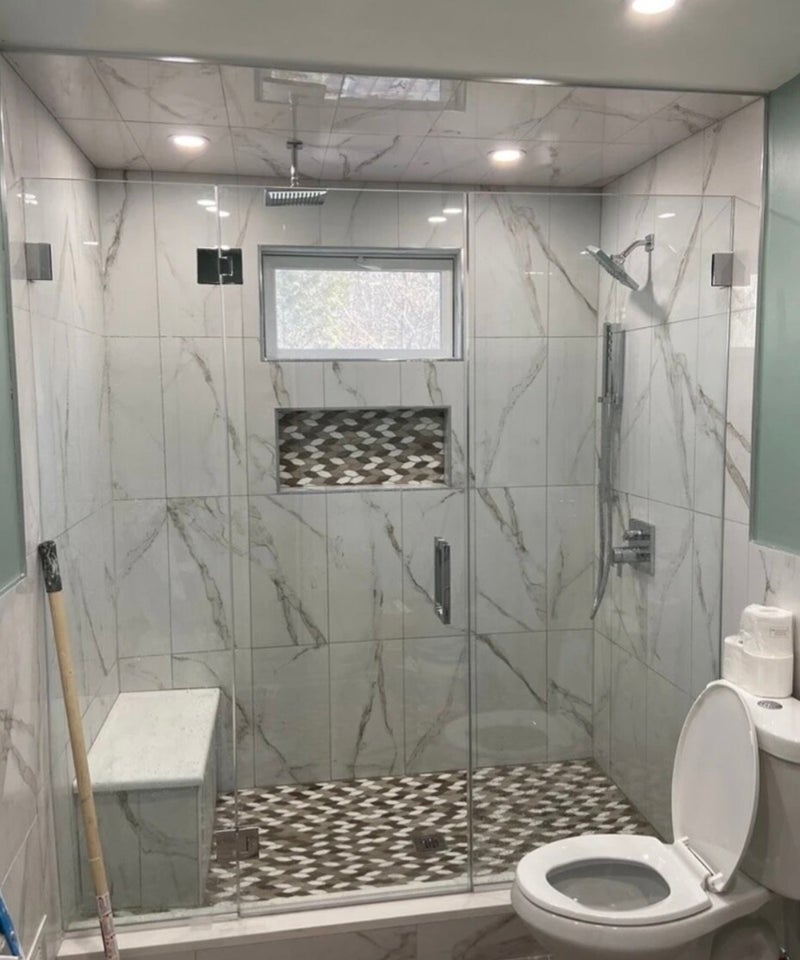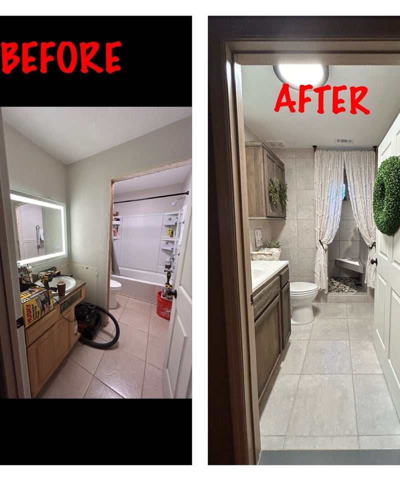 This Photo Below Shows A Complete Bathroom Renovation Where The Tub Was Replaced With A Shower, Bench, and A Window Was Added!